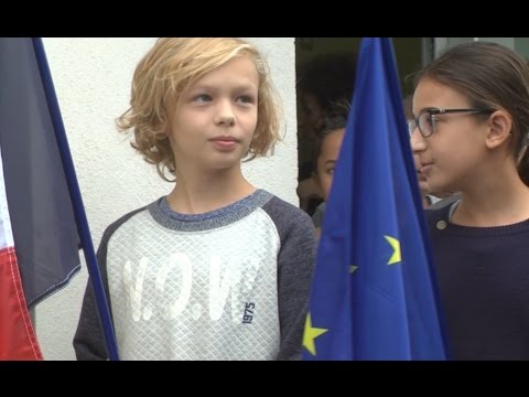 Le drapeau tricolore et le drapeau européen hissés devant toutes les écoles de Carcassonne :